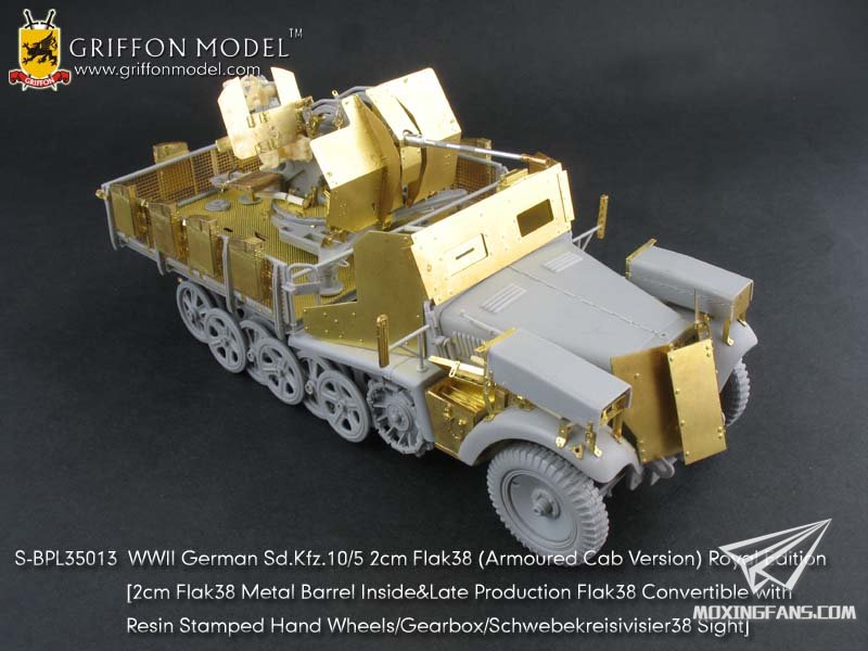 【格里芬 S-BPL35013】德国Sd.Kfz.10/5自行2cm Flak38高炮(装甲驾驶室型)顶级改造套件(威龙6677)