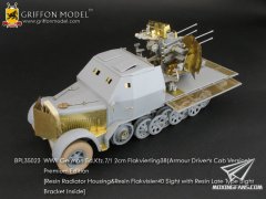 本改造套件包括 (1)蚀刻片20件 (2)树脂车头零件1个 (3)树脂Flakviser 40瞄具零件2个 (4)树脂后期型瞄具支臂1个 (5)树脂发电机 2个 (6)驾驶室仪表板瞄具仪表板用胶片1张 (7)驾驶室仪表板用水贴纸1张 (8)线缆500mm (9)空心黄铜管1根 (10)改造辅料:胶棒;铜线...