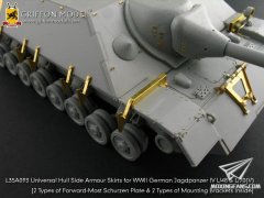 本通用改造套件包括 (1)蚀刻片4件 注:适用于 Dragon公司 Smart Kit 系列塑胶套件(包括编号6397、6623 塑胶套件)。 套件特点 (1)可选择制作两种型式的Jagdpanzer IV L/48 L/70(V) 坦克歼击车车族通用 车身间隔装甲 A. Jagdpanzer IV L/48 Jagdpanzer IV L/70...