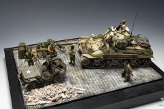 五个人物中,魏特曼为三花自带兵人,其它为Alpine兵人,桶车为田宫166,增加工具口,机枪座蚀刻片细节,故事设定为威龙老沃6800封绘(向老沃致敬),即1944年8月8日,魏特曼车组在法莱斯至...