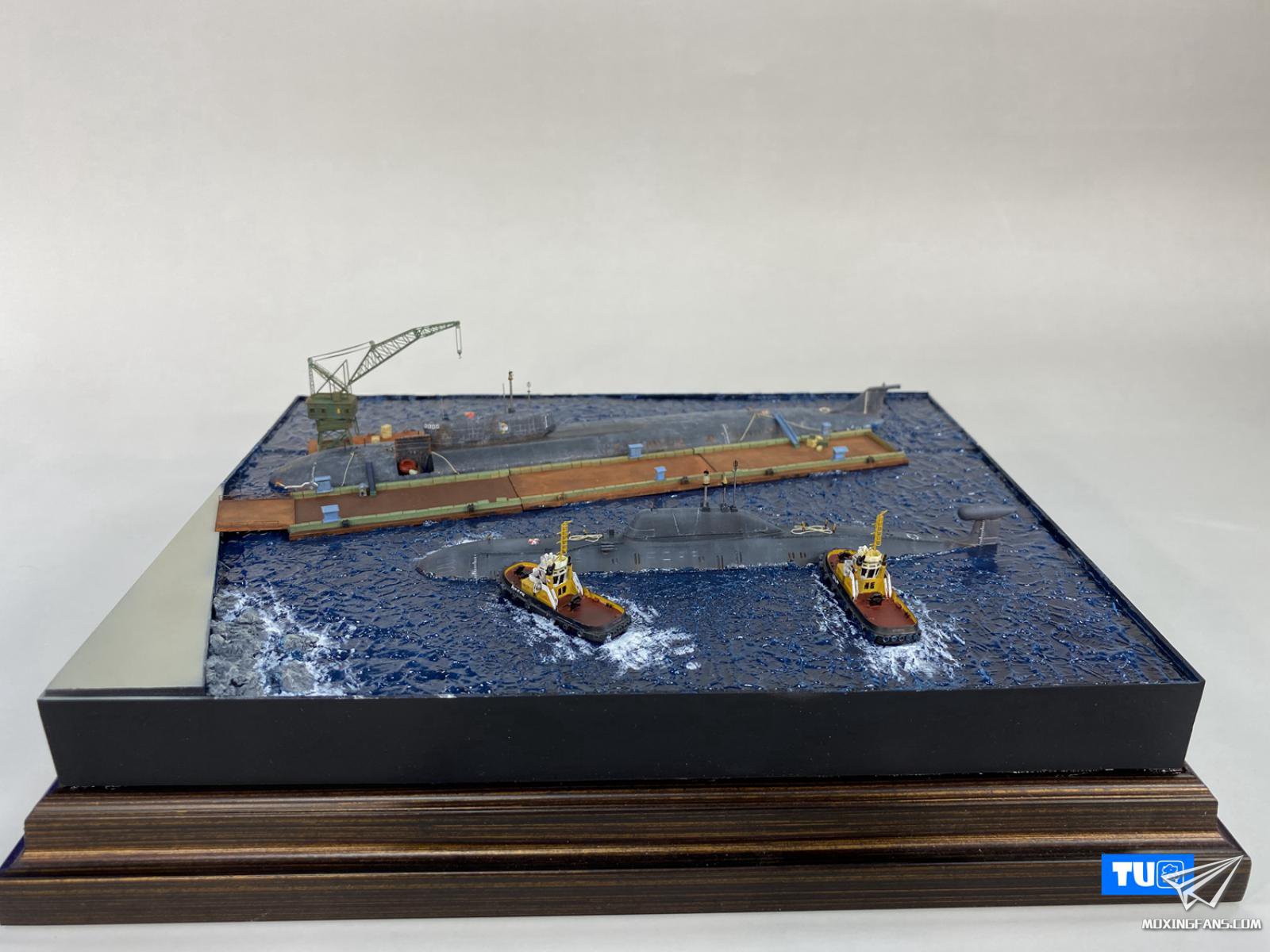 灵感来源 主要套件选用田宫奥斯卡和小号手阿库拉、游丰90600拖船和AM起重机蚀刻片。自制两艘潜艇的潜望镜、栏杆扶手,自制栈桥和配电箱,追加了奥斯卡的发射筒和指挥平台的消声瓦细节。每天中午两小时,耗时两个月左右。 共 3 页 <123>