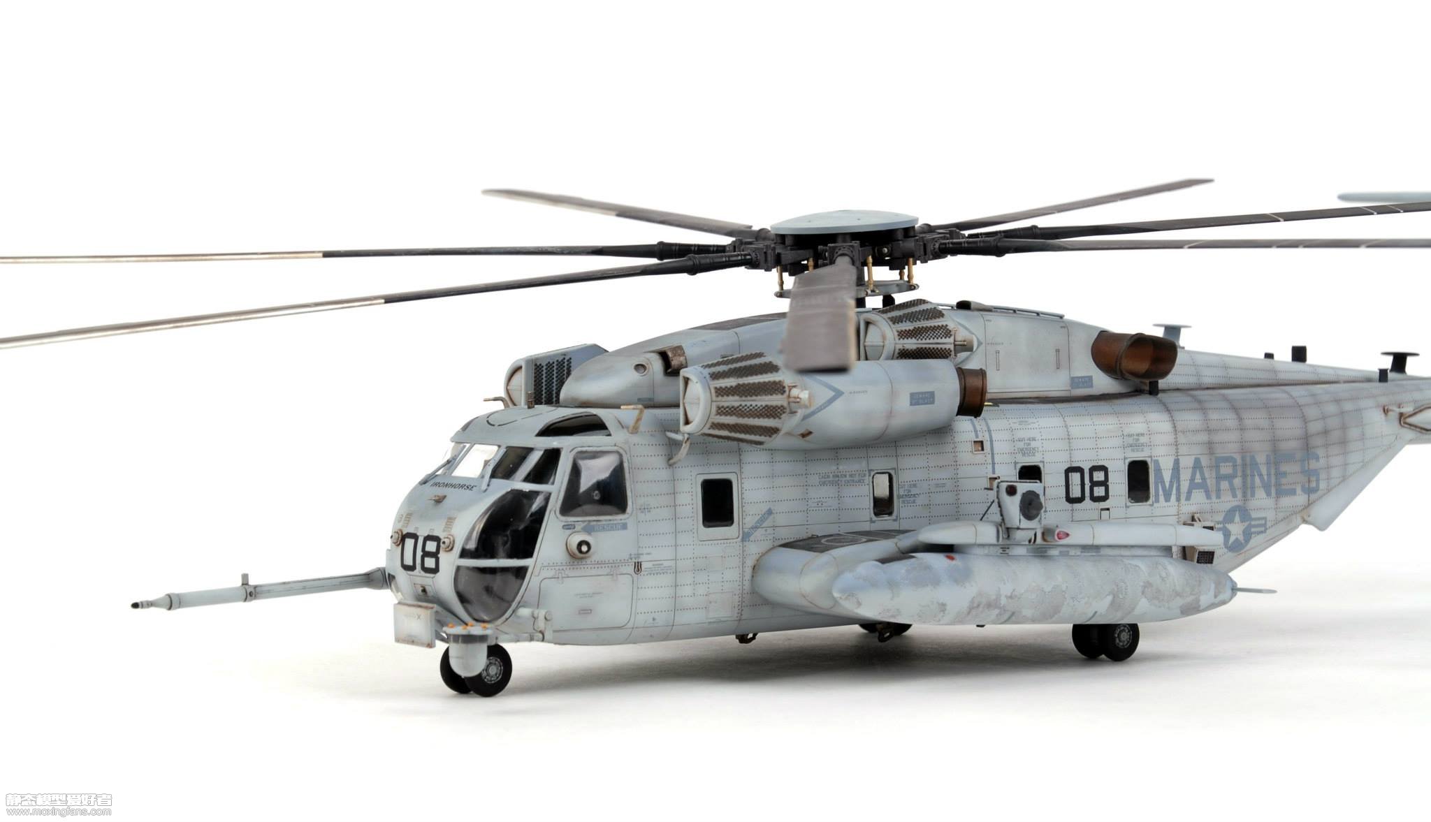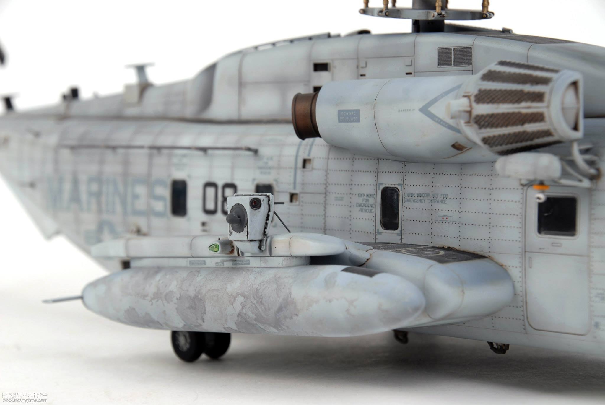 Hong Hwan Jang大师的这件48比例的CH-53E模型作品使用的是爱德美的板件,小编去某宝逛了一圈,这货居然绝版了。。。作为爱德美比较早期的产品,这盒套件也有着些许不足之处,然而在大师的手中,这些都不叫事, 几乎重制了整机的铆钉和刻线,使用Wolfpack的树脂件对原件的细节和错误进行了修正。使用美国海军的标准色进行涂装,对一些部位加强了海水的侵蚀效果,整件作品尽显大师手笔,干净利落!