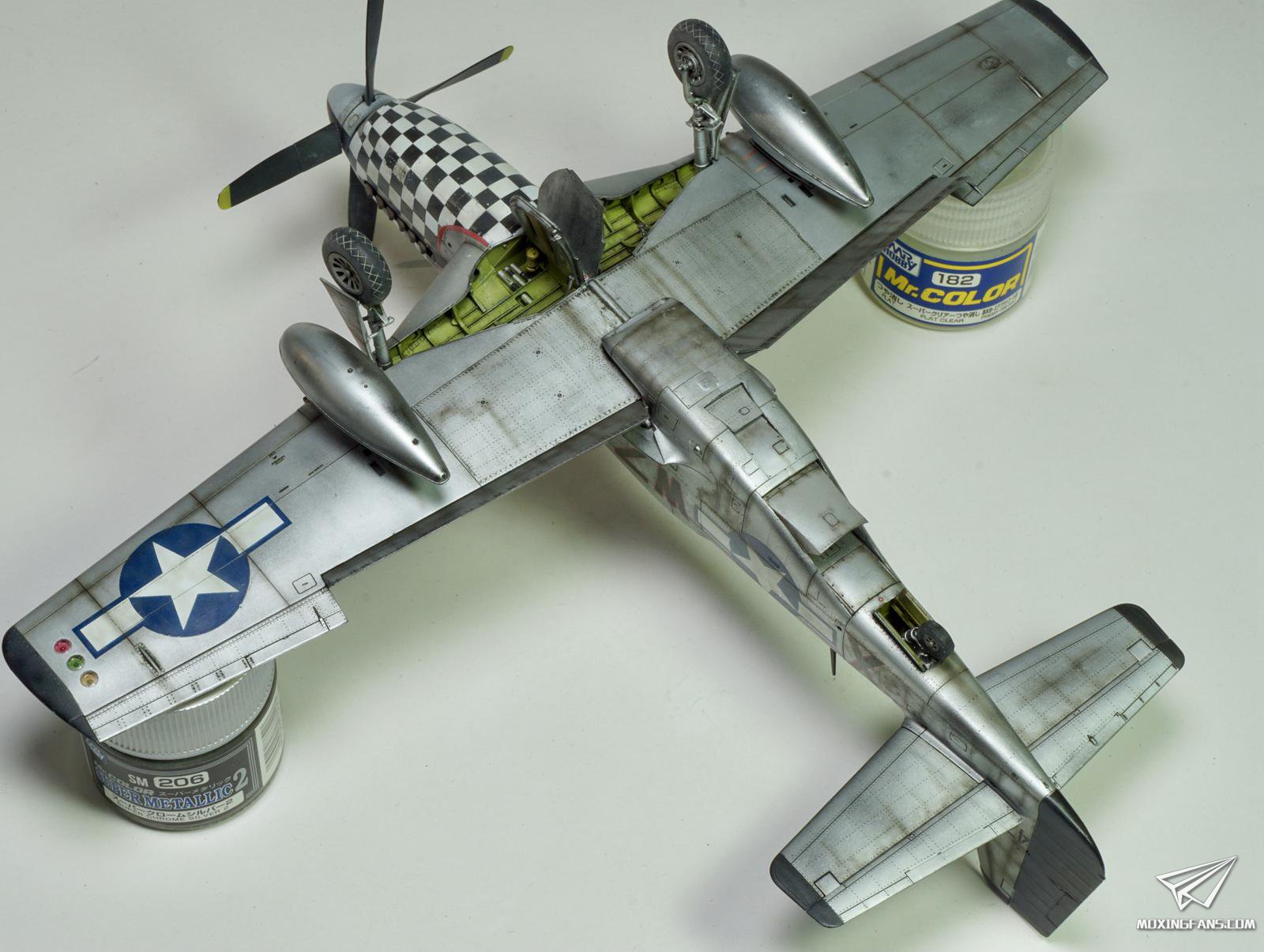 本次选择了牛魔王的48比例野马套件,这次直接选择周末版而未选用配置更丰富的豪华版,只是单纯因为想要刷这架棋盘格的涂装。野马的涂装普遍都是很帅很阿美咔叽的,但是棋盘格+美式涂鸦合在一起,使我欲罢不能,一下就激起了无限的制作欲望。 整体制作没有什么难度,机头棋盘格的涂装是直接用水贴来表现的,但是需要6块水贴拼凑在一起。起初做好了多块水贴拼在一起会存在错位、偏差的心理准备,但是贴完却真的基本是完美组合,没有偏差。但是图手快的我过早的撕下水贴上的透明膜导致一些没有完全服帖的内容被直接揭下来,无奈只好又慢慢用遮盖把遗失的细节用喷笔补好。其余制作都很愉快,后期旧化使用了后置阴影来加强一些阴影和油污。(完)