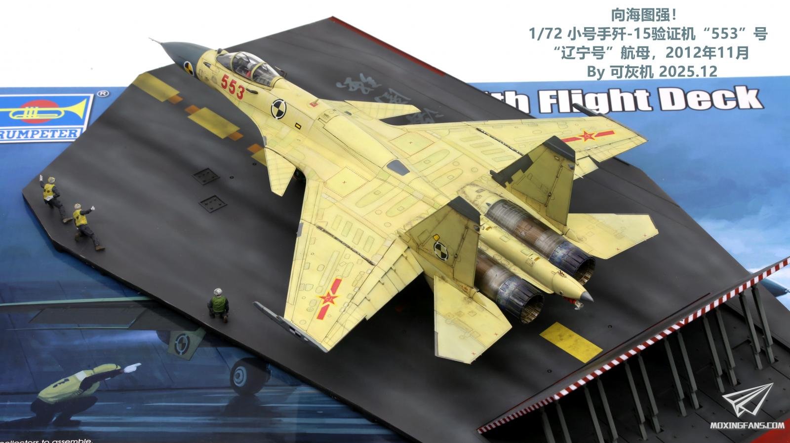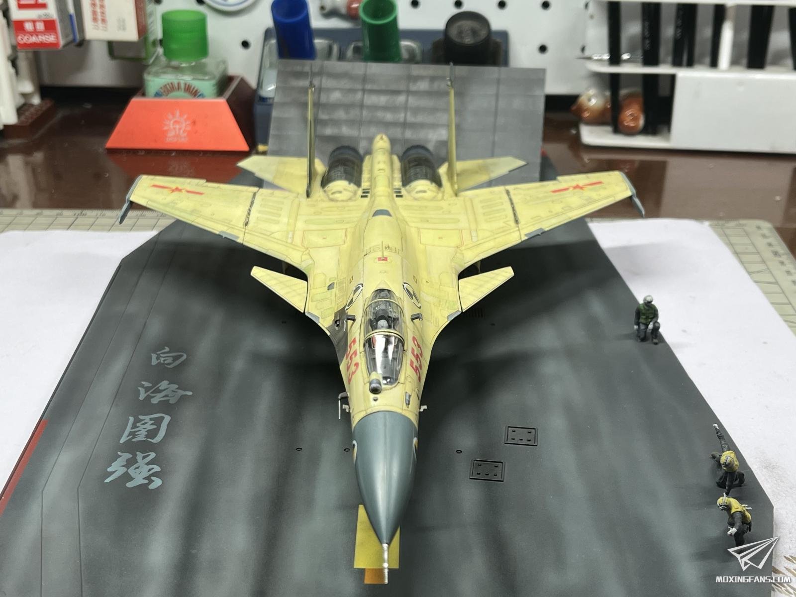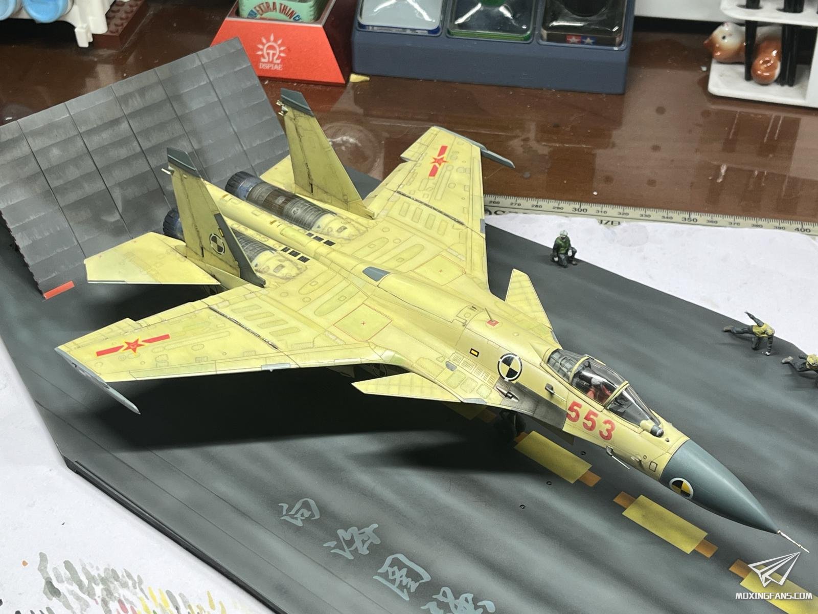第一次做现代机从72入手,选大国重器题材,歼15黄色验证机最出名的是“552”及“553”号,别称玄冥二老,二老承担了早期大多数的上舰测试任务,出镜率也是最高的,经过一阵纠结后最终选择了553号即号手封绘涂装。板件方面,01670虽是小号手多年前的产品,但从组合度、细节、场景立意方面(带甲板)仍是72歼15的不二之选,增加些许改件丰富细节,整体用时两个月,主要精力投入在尾喷的涂装学习。场景方面,号手原甲板据了一圈,一方面是突出主题、保持紧凑布局,另一方面也便于后续存放,人物方面,原版兵人直接放弃,选reskit的地勤兵人,但不出意外还是出了意外,经过考证,号手甲板本身给出的是辽宁号二号起飞位(航母行驶方向前右侧),起飞引导员通常是在前甲板中部,即二号位左侧(在右侧可能会进入起飞尾流路径,很危险),后购买的兵人是右侧位兵人,因此重新购买左侧位引导员,尾喷挡板的尾焰灼烧效果本次尝试了纯油画颜料晕染的方式,从效果来看还可以,最后总结一句话就是过程坎坷、收获满满: