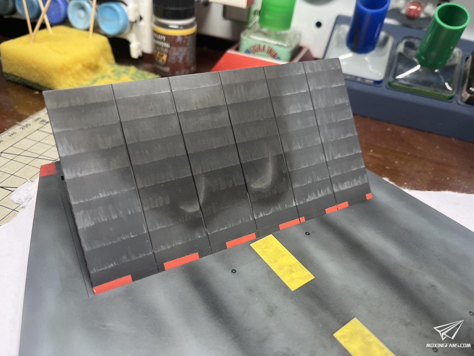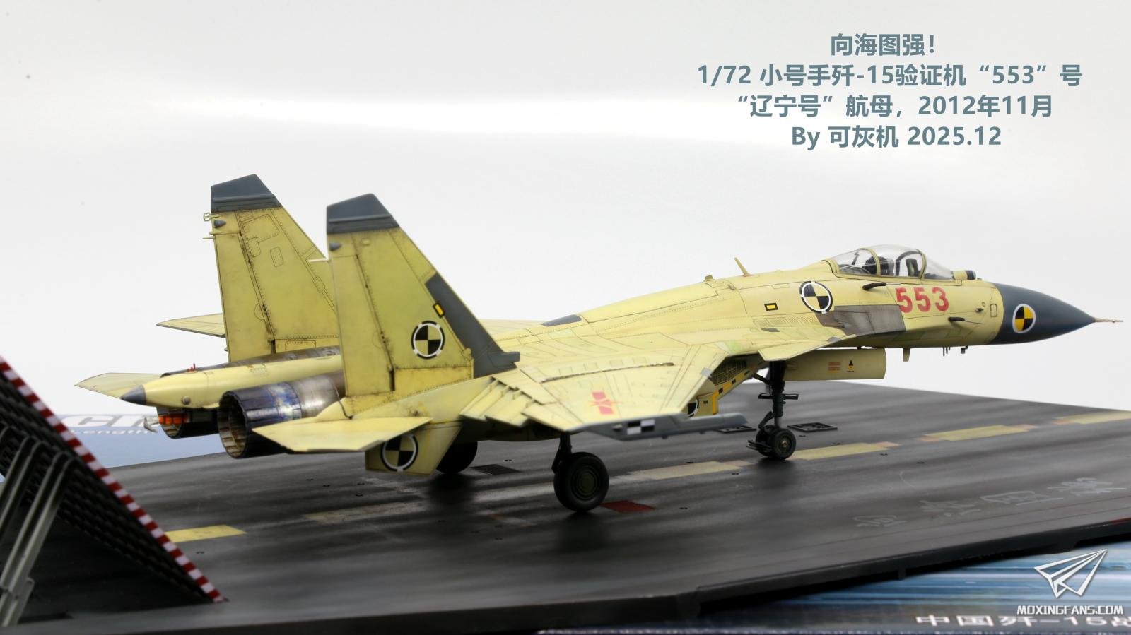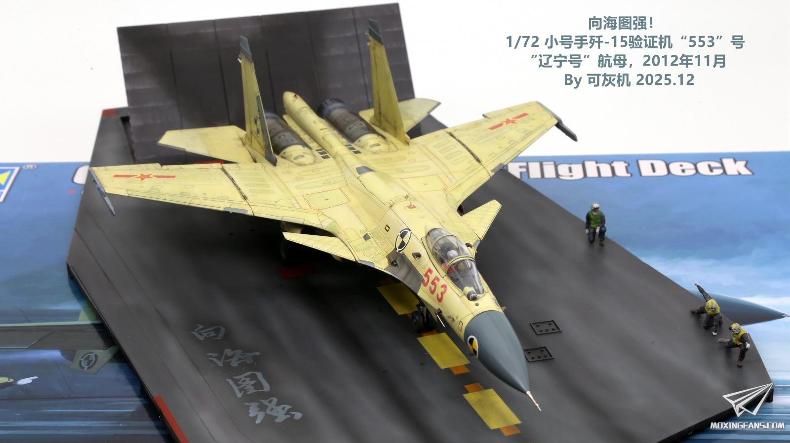 第一次做现代机从72入手,选大国重器题材,歼15黄色验证机最出名的是“552”及“553”号,别称玄冥二老,二老承担了早期大多数的上舰测试任务,出镜率也是最高的,经过一阵纠结后最终选择了553号即号手封绘涂装。板件方面,01670虽是小号手多年前的产品,但从组合度、细节、场景立意方面(带甲板)仍是72歼15的不二之选,增加些许改件丰富细节,整体用时两个月,主要精力投入在尾喷的涂装学习。场景方面,号手原甲板据了一圈,一方面是突出主题、保持紧凑布局,另一方面也便于后续存放,人物方面,原版兵人直接放弃,选reskit的地勤兵人,但不出意外还是出了意外,经过考证,号手甲板本身给出的是辽宁号二号起飞位(航母行驶方向前右侧),起飞引导员通常是在前甲板中部,即二号位左侧(在右侧可能会进入起飞尾流路径,很危险),后购买的兵人是右侧位兵人,因此重新购买左侧位引导员,尾喷挡板的尾焰灼烧效果本次尝试了纯油画颜料晕染的方式,从效果来看还可以,最后总结一句话就是过程坎坷、收获满满: