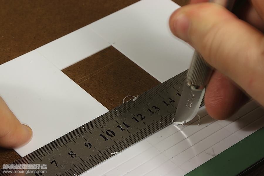 这是大师的最新力作,看来买板件来做已经不能满足大师的要求了,这次是全自制。大师先选取了一幢木屋作为目标,然后绘制草图, 使用薄铝板制作屋顶,裁剪各类胶板、胶棒搭建,并且自制了木纹效果,甚至连钉子的效果都制作出来。大师使用流道拉丝制作了树干,使用纸制作了树叶,流道拉丝这种技法小编也用过,不过是用来制作焊缝,像大师这样来制作树木,小编还是第一次看到,真的开了眼了。木屋的外墙做旧的效果同样NB,依旧使用了发胶掉漆、润色、罩染等技法,木板的质感显露无疑。小编不由得感叹:在大师的面前,神马板件都是浮云,全自制才是真NB!