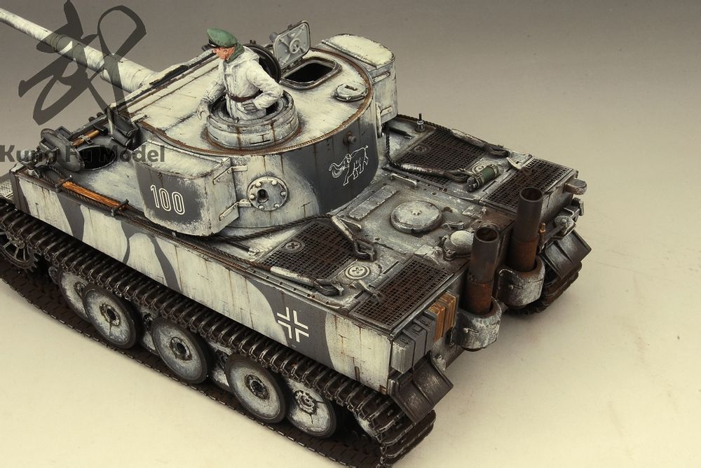 兵人方面使用的应该是田宫4号H里自带的穿着冬装的德军军官。这款兵人非常赞,细节出众,动作自然,不输树脂,配虎式非常好。