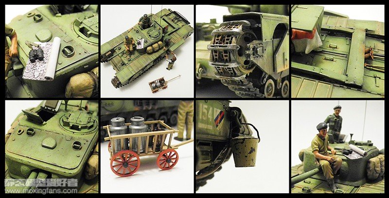 使用了性价比很高的田宫老版丘吉尔4的板件,简单考证,加了点细节。 一般英军绿色要更深一点,但是看了一些历史照片,后期的部分涂装比前期型号要浅一点,具体浅多少说不好,也可能是照片的问题,再加上为了更加凸显细节就做成现在这样~后期也没用滤镜过分改善色调哈~ 做英军要多少加点想象~~