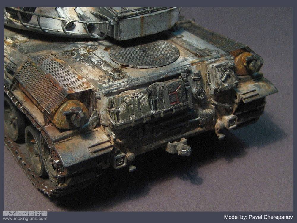 作为MENG的初期模型产品,这辆AMX-30B总是让人有些不尽人意的地方,想当初有多少模友是因为那张能推着跑的照片才买的这盒模型?小编也是被那张照片骗了,从此明白了“官图无限美”这个真理。Pavel Cherepanov大师的这辆 AMX-30B使用的也是MENG的板件,目测是直做,涂装方面采用了二战战车惯用的雪地迷彩和重口味旧化,突然发现现代战车如此旧化也是很出彩的,模友们也可以尝试一下。