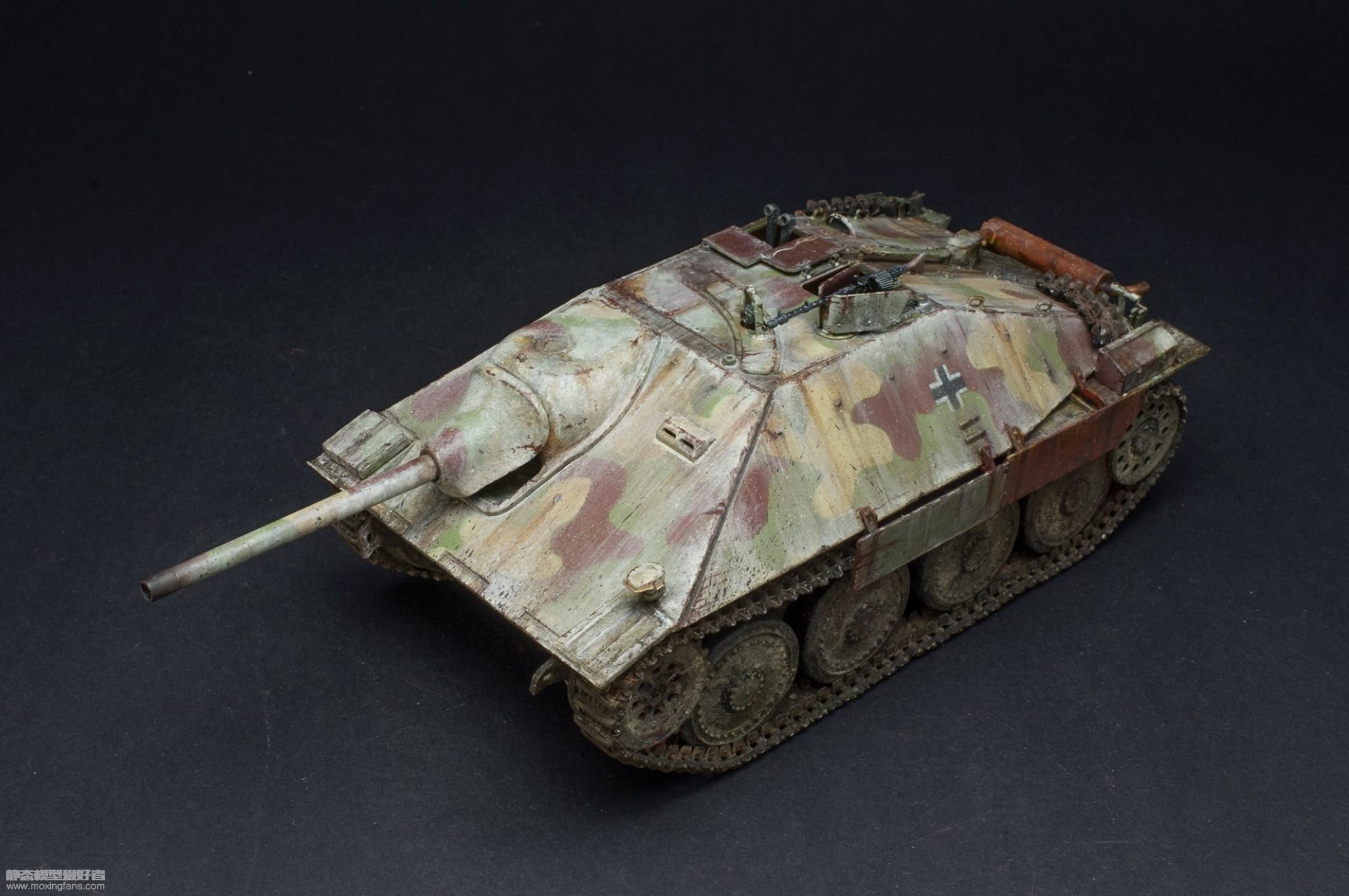 田宫的追猎者是非常不错的一款模型,板件锐利,细节丰富,组合度极佳,算是目前的决定版(牛的除外,太米了)。Jenson Ying大师的这件模型就是使用田宫的板件,基本直做,只是更换了金属铝带。涂装方面采用了德军三色迷彩为底色的涂装,口味比较重,最终成品效果非常不错。成品图在第一页,过程见后页。 共 2 页 <12>
