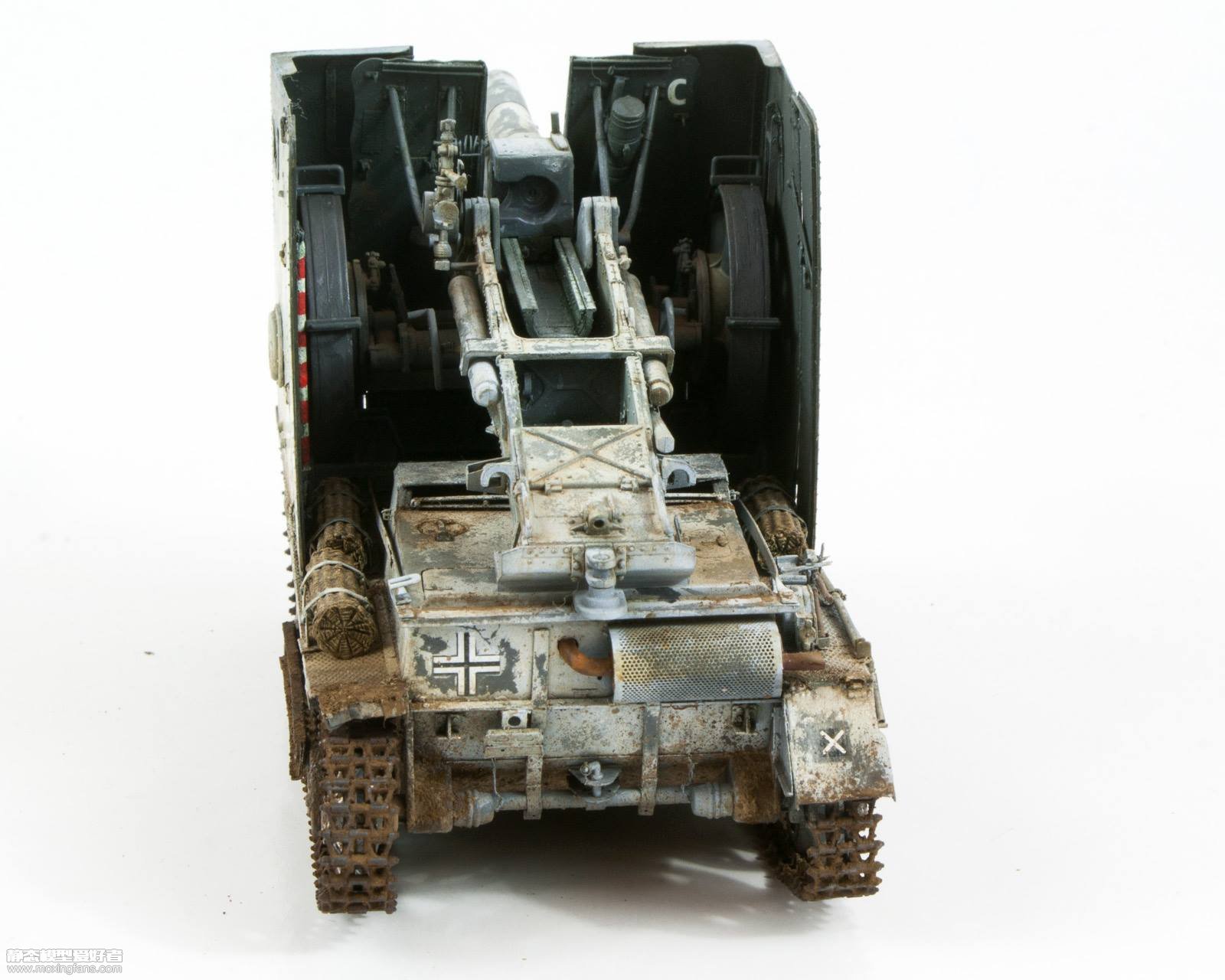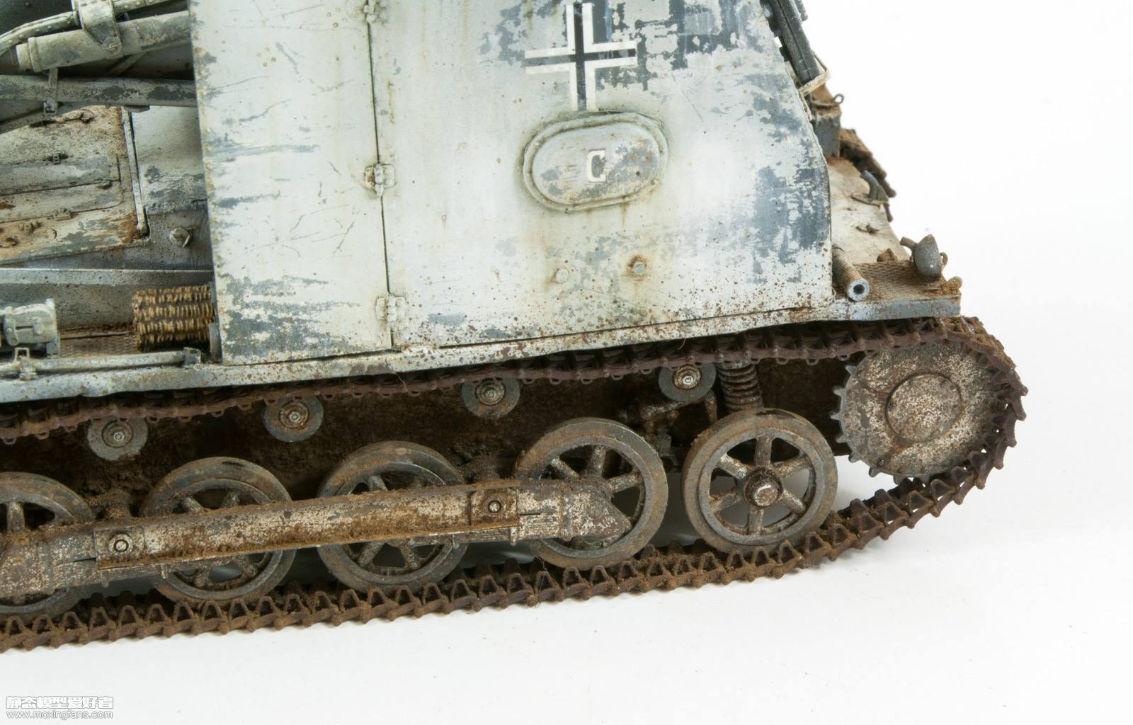 Konrad Dzik大师的这件作品使用的是威龙的6259野牛1的板件,使用超改对全车的细节进行了加强,小编看着全车黄橙橙的蚀刻片就菊花发紧,工作量有些大,其实威龙的这款野牛1的战斗室装甲板开的就够薄了,相信大师一定是PE狂人。涂装方面使用德国灰作为底色,配合发胶掉漆制作了雪地迷彩,整体效果基本重现了作者的历史照片。 共 3 页 <123>