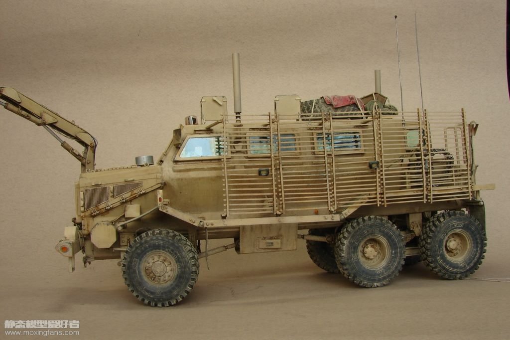 Giannis Pantos大师的这件作品是大水牛防雷车,而且是比较变态的附加装甲型。大师制作的非常工整,使用美军惯用的沙黄色作为主色涂装。本来看上去只是一件不错的作品,但是大师竟然给全车的灯具进行了发光改造,晚上关灯之后在场景中的表现非常出色,算得上是一件精品,希望也能够给国内的模友们带来一点灵感。