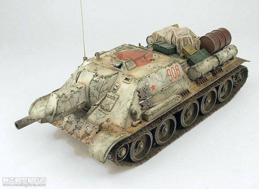 Andrzej Żak大师的这件作品使用的是田宫出品的SU-122,是一件不折不扣的老货。想要把这种细节不怎么出色老货做的出彩的难度是不小的,大师动了一番脑筋,全车直做,使用雪地迷彩突出斑驳感,并且别出心裁的在雪地迷彩上面画了一些树苗,成功的将观者的注意力吸引到了这上面,是一件很特别的作品。