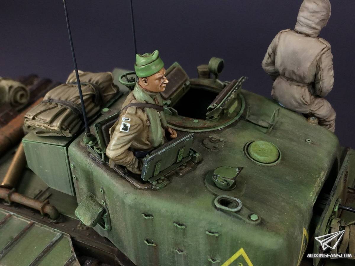 韩国的영헌김大师的这件作品选择了丘吉尔重型坦克,虽然并未言明品牌,但是从细节来看应该是AFVCLUB的套件,并且使用补品加强了细节。虽然说丘吉尔算不上一款高颜值的坦克,但是在大师的手下却表现力十足,色差,掉漆,天然土,金属色泽等处理的都非常到位,整车的质感十足。