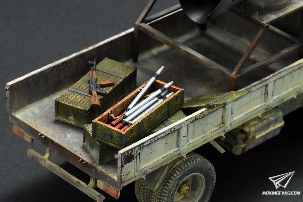 DIOPARK推出的这款改装卡车国内已经上市了,但是可能因为价格比较高一直都没见到成品。这件作品是台北的模友Leo Han制作的,这个题材无疑是一流的,兼具了民用和军用装备的气质于一身,战场气息浓郁,作者制作的也非常精彩,从上色到旧化都非常用心,能看出是一件花费了不少精力的作品。