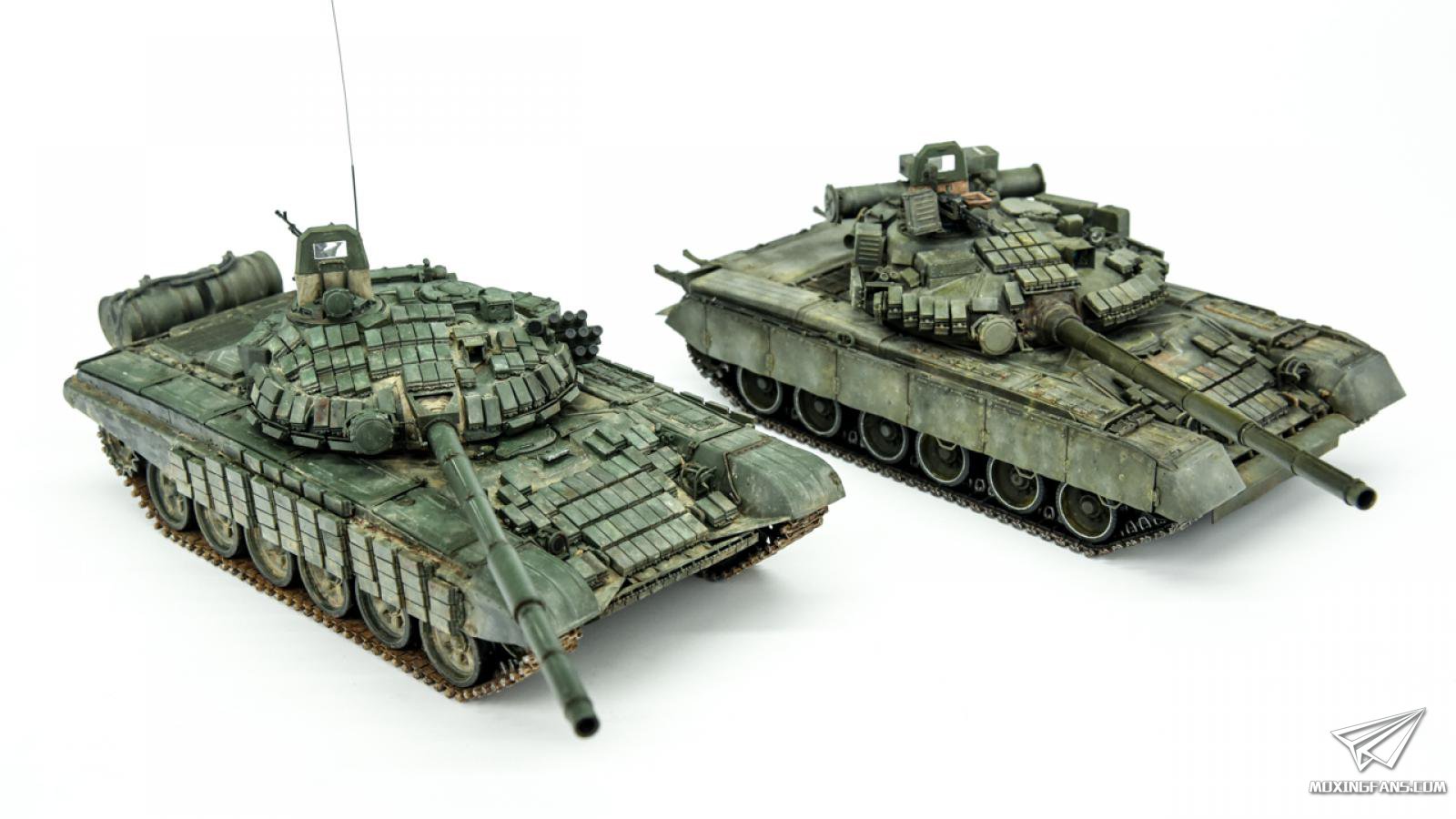 第一次注册发帖。因为现在都习惯手机上看,之前一直也嫌电脑发帖麻烦,光看没发。 小号手的T-72B1(09555),细节很棒,素组都要花很长时间。旧化参考了一些脏脏的实车图,做得也稍重一点,感觉还蛮适合T-72味道的。拍照的时候顺便把之前的T-80BV一起拉出啦合照一下。