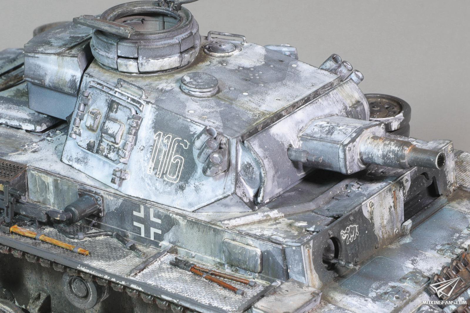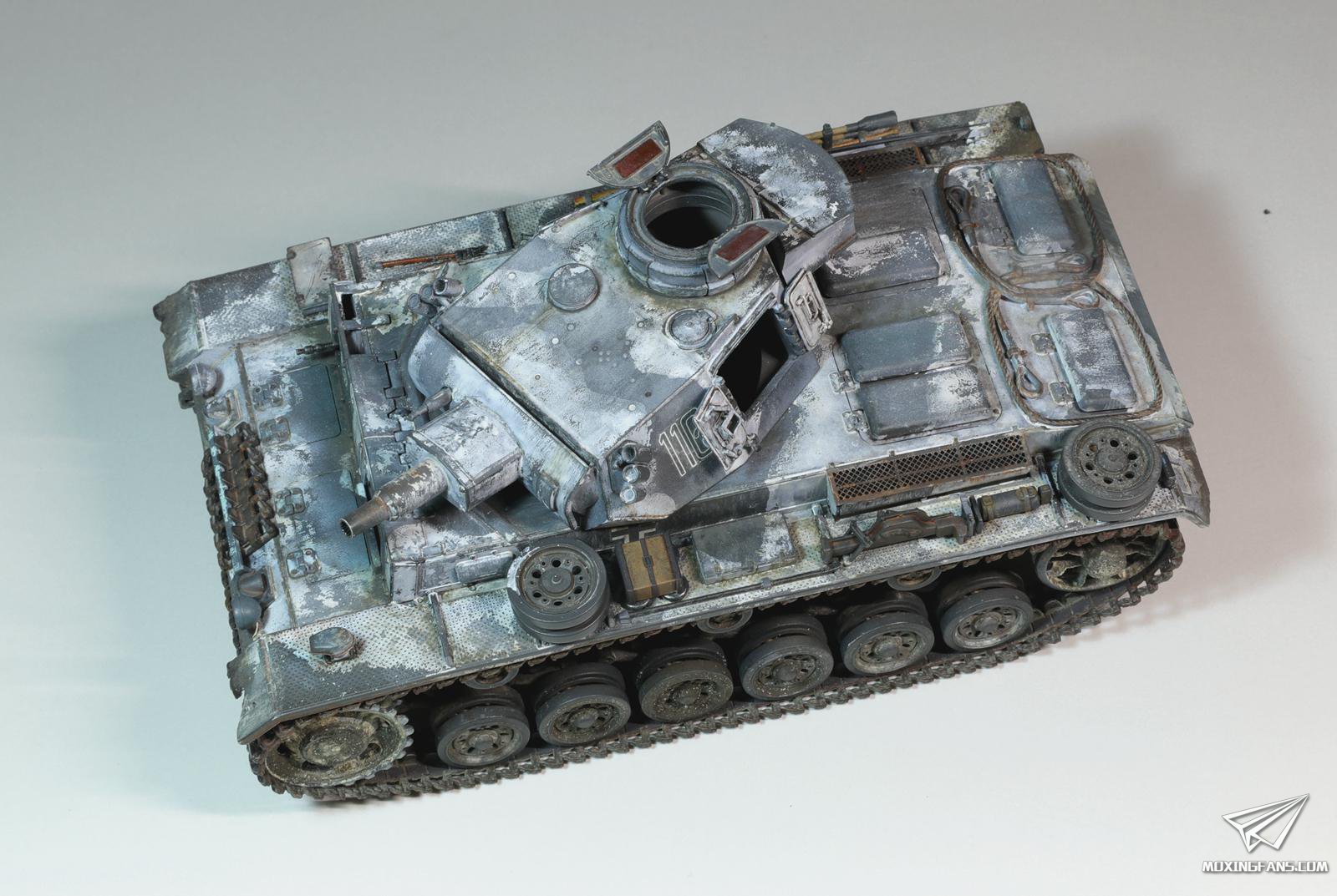 田宫的板件,直做到橡胶履带都没更换,只做了挡泥板轻微战损。涂装采用封绘的502重装甲营冬季雪地涂装,此次重在体验冬季车辆整个涂装旧化的过程。
