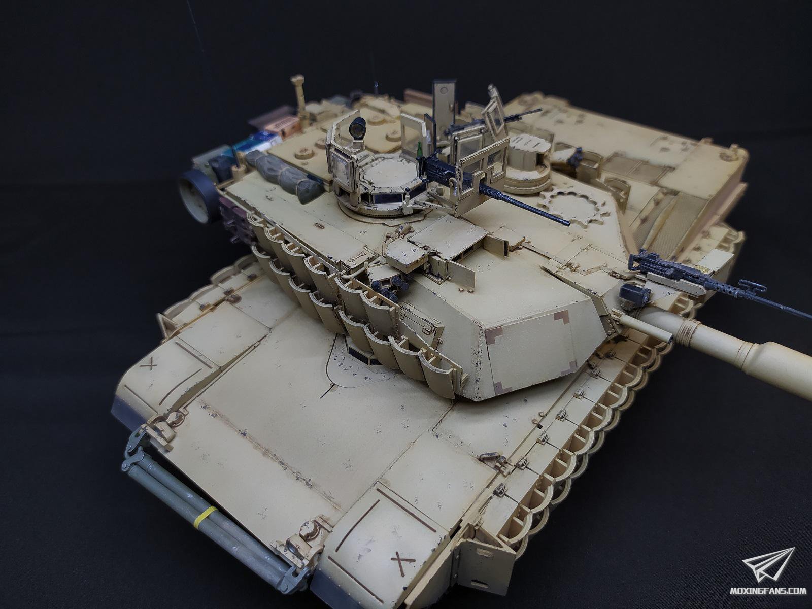 顾名思义三家板件组合成的M1A2,麦田宫M的三合一。车身主体是田宫的,TUSK2是麦田的,活动拼接履带是MENG的。自调色美军沙漠黄轻度旧化即可,闲话少叙直接上图吧,谢谢观赏。